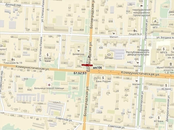 Ботевградская ул., 79, Пожарное депо, перед пересечением с Коммунистической ул., 50м от ТЦ "Ботевград", справа при движении в центр