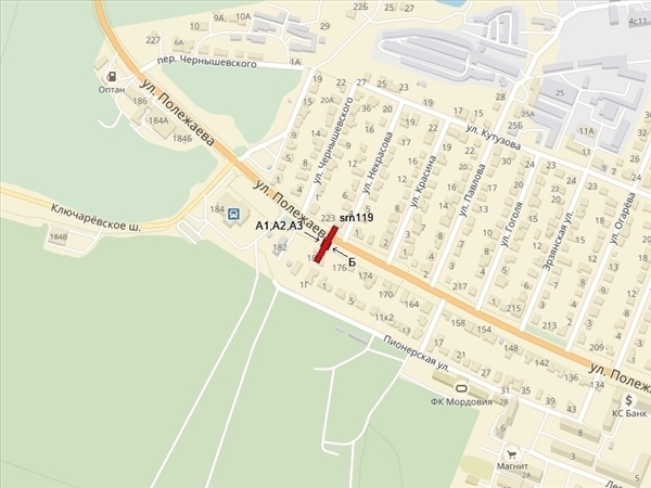 Полежаева ул., 180, за ост."Автовокзал", 100м от автовокзала, справа при движении в центр